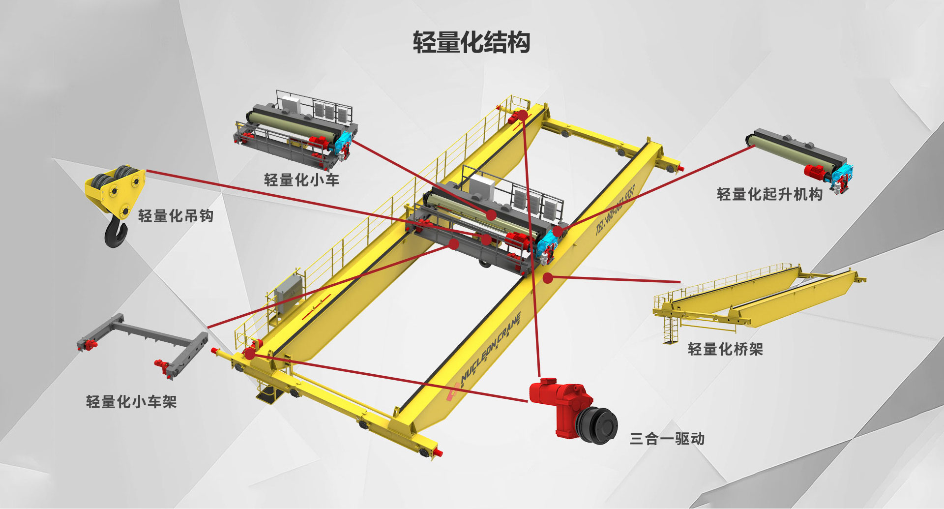 The new design crane reduces its height by 30%, weight by 25%, and comprehensive energy consumption by 20%;