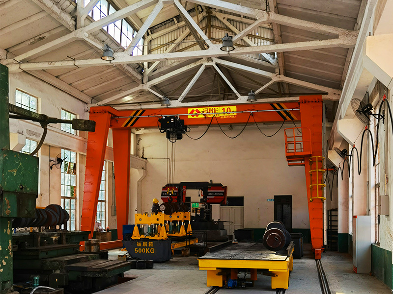 New Chinese single main beam gantry crane (hoist mode) adopts lightweight, modular and parametric design. Hoisting mechanism uses NR mode low headroom electric hoist with superior performance and advanced technology. Traveling mechanism of trolley is drove by three-in-one drive device and the control mechanism adopts the advanced variable frequency and speed regulation control system.
