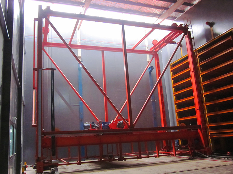绿色建筑墙板养护窑主要用于辅助集成化预制板的生产工艺,可实现集成预制板的搬运、存储、堆垛、养护等功能。该设备由窑体、行走机构、升降机构、存取机构、液压系统、电气控制系统和加湿温控装置等七部份组成。该产品采用自动化控制系统,能够在生产线上自动识别、自动抓取、自动存取等作业,并通过窑体内保温、加湿设备对其进行养护。